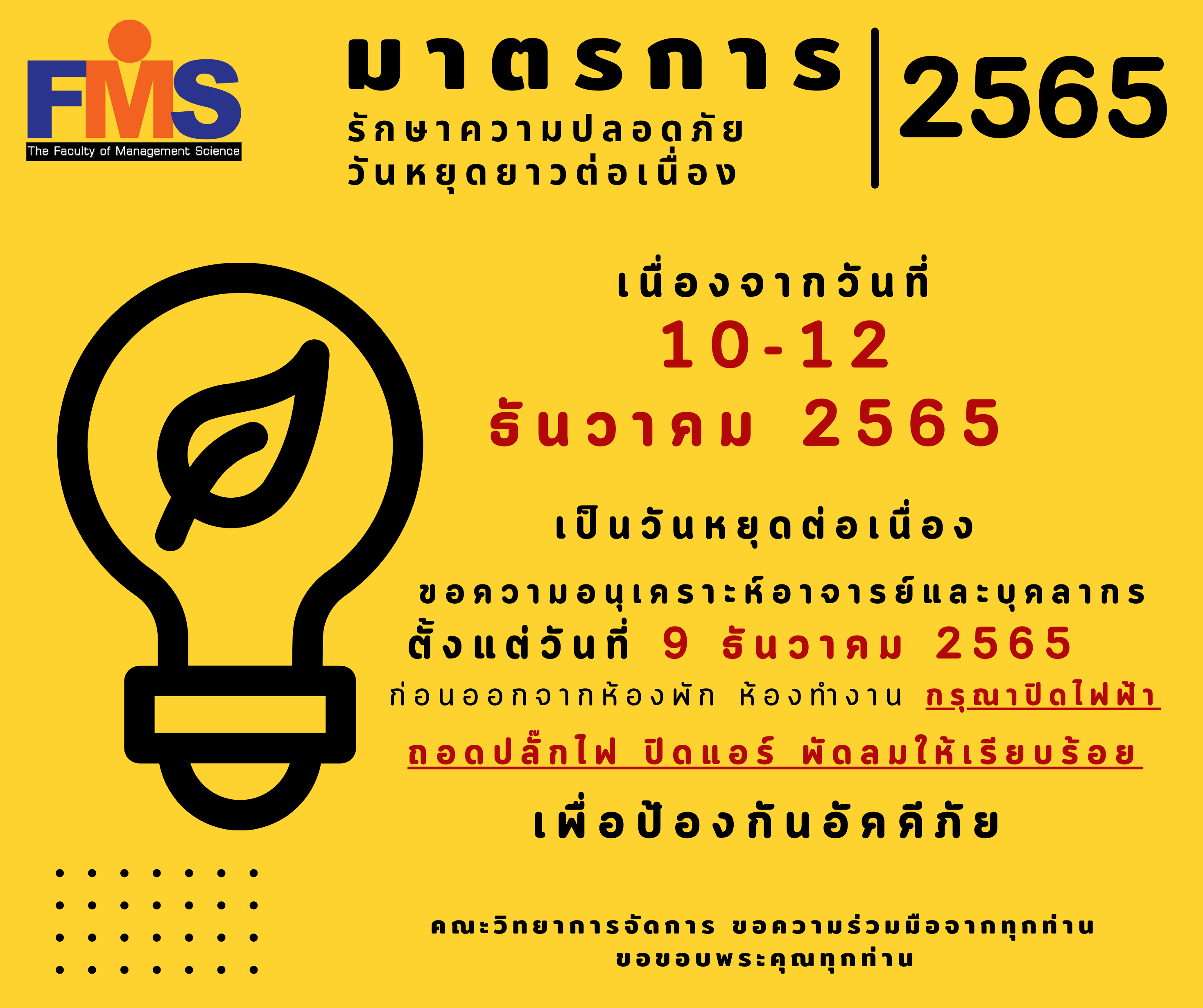 เนื่องจากวันที่ 10-12 ธันวาคม 2565 เป็นวันหยุดต่อเนื่อง