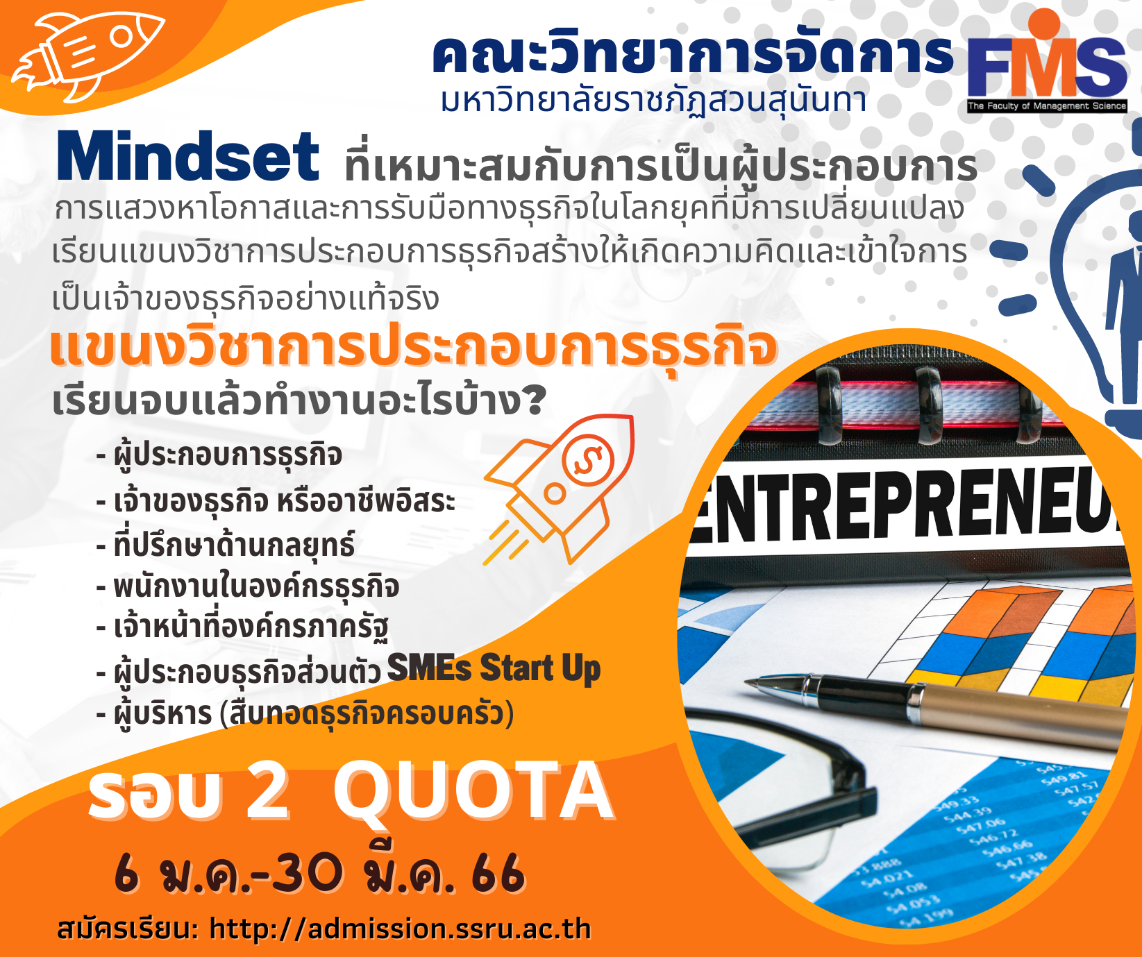 Mindset ที่เหมาะสมกับการเป็นผู้ประกอบการ การแสวงหาโอกาสและการรับมือทางธุรกิจในโลกยุคที่มีการเปลี่ยนแปลง เรียนแขนงวิชาการประกอบการธุรกิจสร้างให้เกิดความคิดและเข้าใจการเป็นเจ้าของธุรกิจอย่างแท้จริง