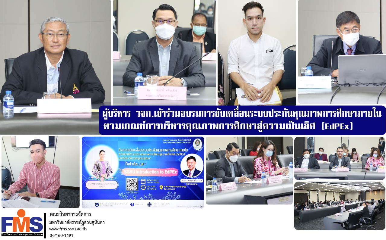 วันที่ 31 มกราคม 2566 เวลา 09.00 น. ผู้ช่วยศาสตราจารย์ ดร. สมศักดิ์ คล้ายสังข์ คณบดีคณะวิทยาการจัดการ พร้อมด้วยอาจารย์ ดร.อิทธิภูมิ พรหมมา รองคณบดีฝ่ายแผนงานและประกันคุณภาพ และนายฉัตรลิขิต นิ่มงาม นักวิชาการศึกษา ฝ่ายแผนงานและประกันคุณภาพ เข้าร่วมอบรมการขับเคลื่อนระบบประกันคุณภาพการศึกษาภายใน ตามเกณฑ์การบริหารคุณภาพการศึกษาสู่ความเป็นเลิศ (EdPEx) มหาวิทยาลัยราชภัฏสวนสุนันทา ในหัวข้อ "SSRU Introduction to EdPEx" โดยมีรองศาสตราจารย์ ดร.วิทยา เมฆขำ รองอธิการบดีฝ่ายแผนงานและประกันคุณภาพ เป็นประธานการประชุม ซึ่งได้รับเกียรติจาก ผู้ช่วยศาสตราจารย์ ดร.น.สพ.ธีระศักดิ์ พราพงษ์ ผู้ทรงคุณวุฒิและผู้ประเมินเกณฑ์ EdPEx200 สป.อว. เป็นวิทยากรให้ความรู้ โดยมีคณะผู้บริหาร และผู้ที่เกี่ยวข้องเข้าร่วมอบรม จัดโดยกองนโยบายและแผน ณ ห้องประชุมสภามหาวิทยาลัย อาคาร 31 ชั้น 5