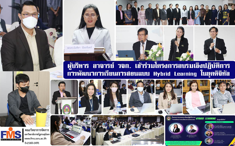วันที่ 3 กุมภาพันธ์ 2566 เวลา 08.45 น. ผู้ช่วยศาสตราจารย์ ดร.สมศักดิ์ คล้ายสังข์ คณบดีคณะวิทยาการจัดการ พร้อมด้วยอาจารย์ ดร.กฤษณะ เชื้อชัยนาท รองคณบดีฝ่ายวิชาการ และอาจารย์ประจำคณะฯ เข้าร่วมโครงการอบรมเชิงปฏิบัติการ การพัฒนาการเรียนการสอนแบบ Hybrid Learning ในยุคดิจิทัล จัดโดยกองบริการการศึกษา เพื่อการวางแผน ออกแบบการเรียนรู้และพัฒนาการเรียนการสอน และเลือกใช้เครื่องมือมาบูรณาการกับการเรียนการสอนให้เหมาะกับสาขาวิชาหรือหลักสูตร โดยมีรองศาสตราจารย์ ดร.นันทิยา น้อยจันทร์ รองอธิการบดีฝ่ายวิชาการ เป็นประธานกล่าวเปิดโครงการอบรม