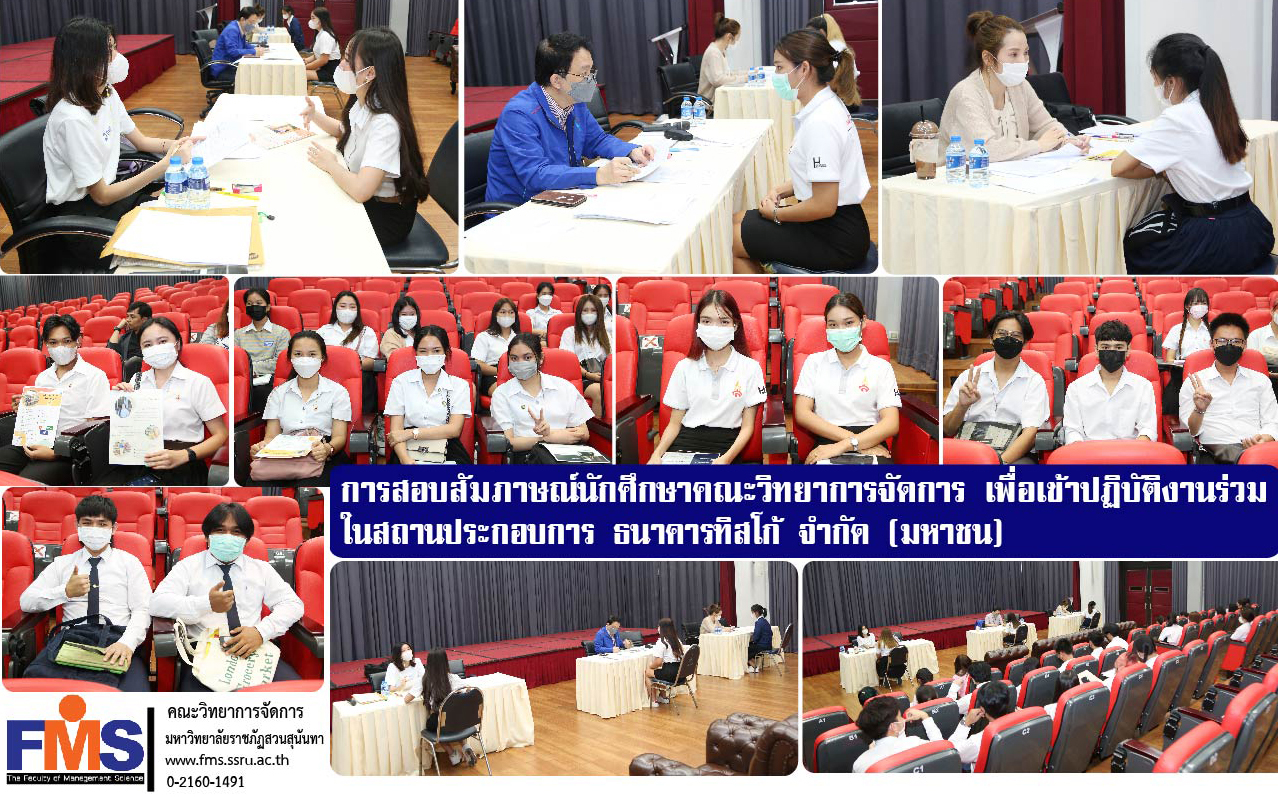 คณะวิทยาการจัดการ มหาวิทยาลัยราชภัฏสวนสุนันทา ส่งเสริมแนวทางการเตรียมความพร้อมในการเลือกสถานที่ฝึกประสบการณ์วิชาชีพฯ แก่นักศึกษา โดยธนาคารทิสโก้ จำกัด (มหาชน) เปิดรับสมัครนักศึกษาที่สนใจ ร่วมทำงาน ทดลองทำงาน และการฝึกงานสหกิจศึกษากับกลุ่มธนาคารทิสโก้ จำกัด (มหาชน) มีนักศึกษาคณะวิทยาการจัดการ ให้ความสนใจเข้าร่วมสมัครเป็นจำนวนมาก และทางธนาคารฯได้ดำเนินการสอบสัมภาษณ์คัดเลือกนักศึกษา เพื่อเข้าร่วมฝึกสหกิจศึกษาตามกำหนดการช่วงเดือนเมษายน - เดือนมิถุนายน และช่วงเดือนกรกฎาคม - เดือนตุลาคม 2566 จัดขึ้น ณ ห้อง Mini Theater อาคาร 57 เมื่อวันศุกร์ที่ 10 กุมภาพันธ์ 2566 ที่ผ่านมา สำหรับการดำเนินการคัดเลือกดังกล่าวเป็นส่วนหนึ่งของนโยบายการปฏิบัติงานร่วมในสถานประกอบการของ นักศึกษาคณะวิทยาการจัดการ เพื่อการเตรียมความพร้อมเข้าสู่ตลาดแรงงานเมื่อสำเร็จการศึกษา