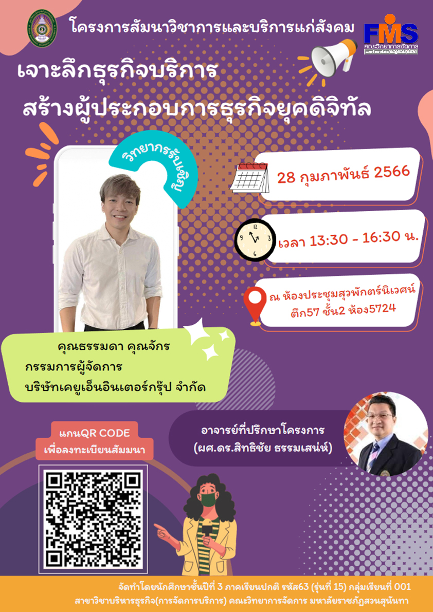 ????ขอเชิญผู้สนใจ  เข้าร่วมโครงการสัมมนาวิชาการและบริการแก่สังคม หัวข้อ "เจาะลึกธุรกิจบริการ สร้างผู้ประกอบการธุรกิจยุคดิจิทัล"