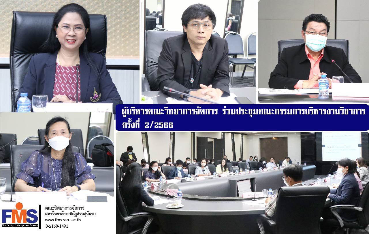 วันที่ 30 มีนาคม 2566 เวลา 13.30 น. อาจารย์ ดร.กฤษณะ เชื้อชัยนาท รองคณบดีฝ่ายวิชาการและรักษาราชการแทนคณบดีคณะวิทยาการจัดการ เข้าร่วมประชุมคณะกรรมการบริหารงานวิชาการ ครั้งที่2/2566 โดยมีรองศาสตราจารย์ ดร.นันทิยา น้อยจันทร์ รองอธิการบดีฝ่ายวิชาการ มหาวิทยาลัยราชภัฏสวนสุนันทา เป็นประธานการประชุม เพื่อขับเคลื่อนการดำเนินงานด้านวิชาการ ณ ห้องสภามหาวิทยาลัย ชั้น 5 อาคาร 31 และการประชุมออนไลน์ผ่านโปรแกรม Google Meet