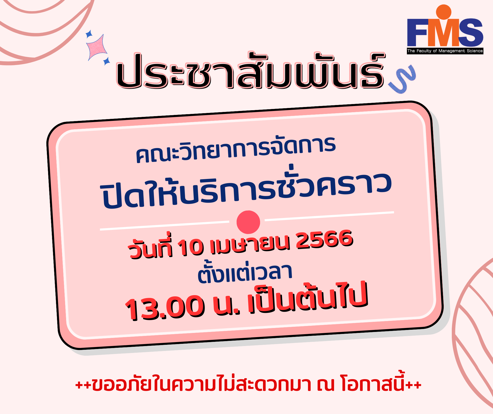คณะวิทยาการจัดการ ปิดให้บริการชั่วคราว ตั้งแต่เวลา 13.00 น. เป็นต้นไป