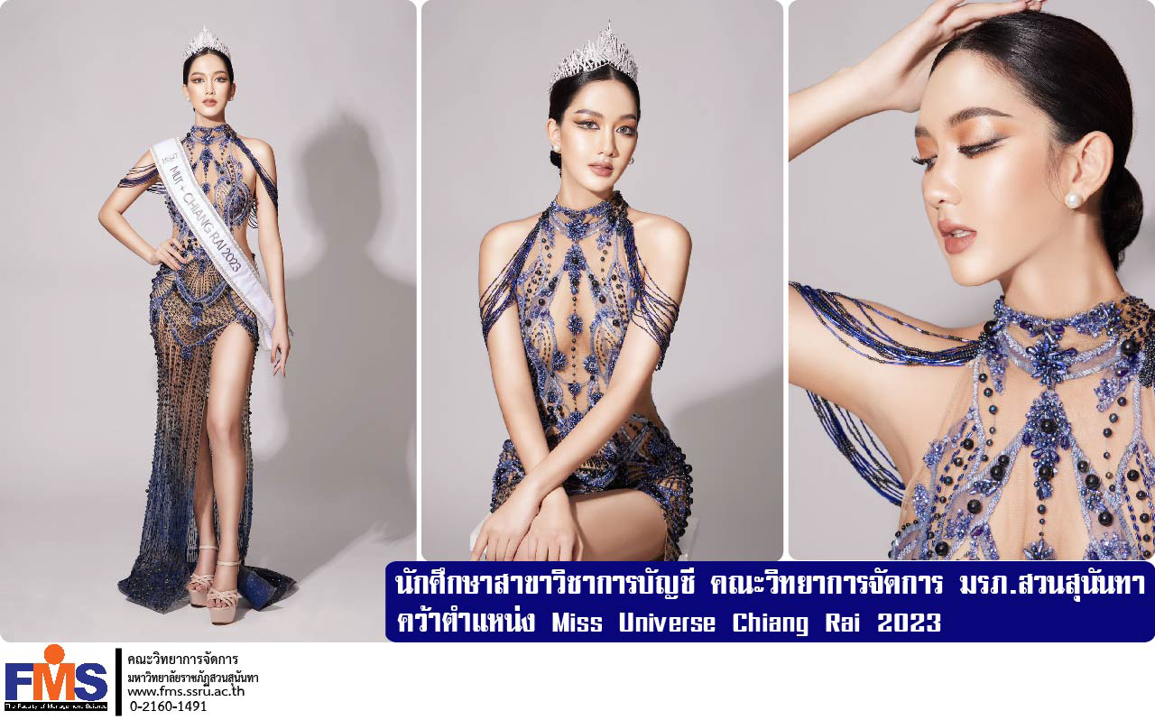 คณะวิทยาการจัดการ มหาวิทยาลัยราชภัฏสวนสุนันทา ขอแสดงความยินดีกับ น้อง"แพรพลอย" นางสาวแพรพลอย พรหมบังเกิด นักศึกษาชั้นปีที่ 4 สาขาการบัญชี คณะวิทยาการจัดการ มหาวิทยาลัยราชภัฏสวนสุนันทา ในโอกาสคว้าตำแหน่ง Miss Universe Chiang Rai 2023 เป็นตัวแทนจังหวัดเชียงราย เพื่อเข้าสู่การประกวดมิสยูนิเวิร์สไทยแลนด์ในรอบ 77 จังหวัดต่อไป