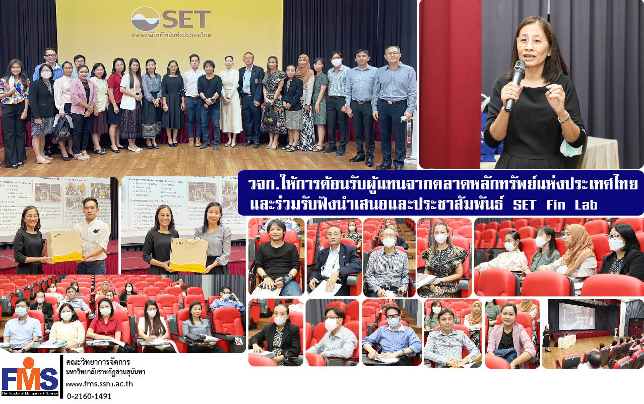 เนื่องด้วยตลาดหลักทรัพย์แห่งประเทศไทย โดย “ห้องสมุดมารวย” ตระหนักถึงความสำคัญในการพัฒนาและส่งเสริมความรู้ด้านตลาดทุน จึงดำเนินการนำเสนอและประชาสัมพันธ์ โครงการ “SET Fin Lab” (ศูนย์เรียนรู้เชิงปฏิบัติการทางการเงิน) เพื่อสนับสนุนให้เกิดความร่วมมือระหว่างตลาดหลักทรัพย์แห่งประเทศไทย กับสถาบันการศึกษาต่าง ๆ ในการถ่ายทอดองค์ความรู้ด้านการเงินและการลงทุนในรูปแบบที่เหมาะสมไปสู่นิสิต นักศึกษา คณาจารย์ และนักวิจัย ห้องปฏิบัติการด้านการเงิน ที่จะรองรับการเรียนการสอนและการทำวิจัยที่ทันสมัย เพื่อการพัฒนาบุคลากร สร้างองค์ความรู้ เสริมรากฐานที่เข้มแข็ง เพื่อประโยชน์ต่อตลาดทุนไทย โดยมีรองคณบดีฝ่ายวิชาการ รองคณบดีฝ่ายแผนงานและประกันคุณภาพ หัวหน้าสาขา หัวหน้าแขนง และอาจารย์ประจำ เข้าร่วมรับฟังการนำเสนอและการประชาสัมพันธ์โครงการดังกล่าว