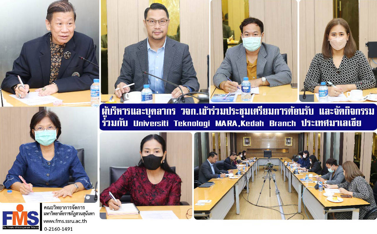 วันที่ 17 กรกฎาคม 2566 เวลา 09.30 น. ผู้ช่วยศาสตราจารย์ ดร.สมศักดิ์ คล้ายสังข์ คณบดีคณะวิทยาการจัดการ พร้อมด้วยนายกาญจน์มนัส หมื่นสังข์ รักษาการหัวหน้าฝ่ายวิจัยและบริการวิชาการ และนางสาวอารยา ยอดฉิม เจ้าหน้าที่บริหารงานทั่วไป ฝ่ายวิจัยและบริการวิชาการ เข้าร่วมประชุมเตรียมการต้อนรับ และจัดกิจกรรมร่วมกับ Universiti Teknologi MARA,Kedah Branch ประเทศมาเลเซีย ซึ่งจะเดินทางมาเยือนมหาวิทยาลัยราชภัฏสวนสุนันทาในวันที่ 17 สิงหาคม 2566 มีวัตถุประสงค์เพื่อหารือเกี่ยวกับแนวทางสร้างความร่วมมือด้านการจัดการศึกษา และการจัดกิจกรรมด้านวัฒนธรรมไทย-มาเลเซีย รวมถึงการบรรยายหัวข้อ “How to Handle Stress” ร่วมกับบุคลากรและนักศึกษาของมหาวิทยาลัย โดยมีผู้ช่วยศาสตราจารย์อนันตชัย เอกะ ผู้ช่วยอธิการบดีฝ่ายวิเทศสัมพันธ์ เป็นประธานการประชุม ณ ห้องประชุมบรรณาศรม สำนักงานอธิการบดี อาคาร 32 ชั้น 4