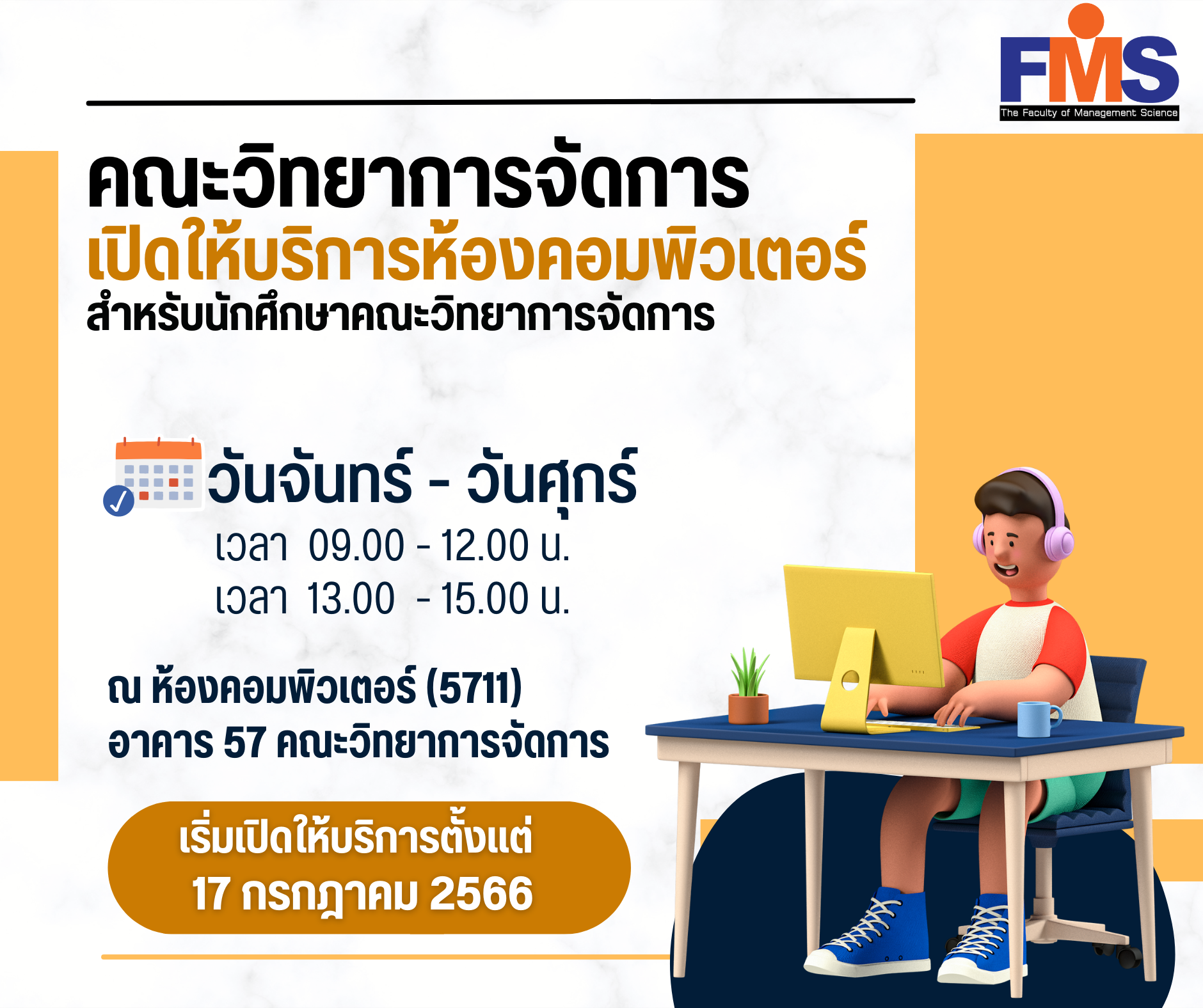 คณะวิทยาการจัดการ เปิดให้บริการห้องคอมพิวเตอร์ สำหรับนักศึกษาคณะวิทยาการจัดการ