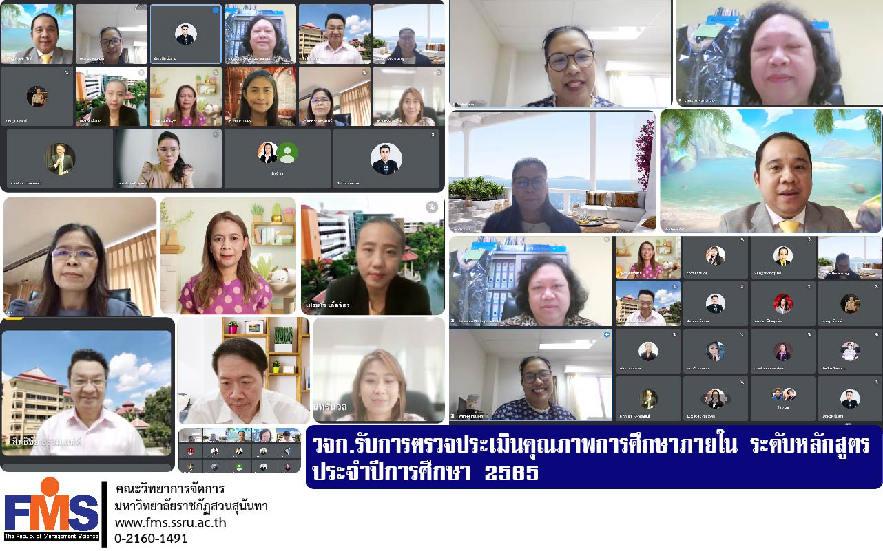 วันที่ 25 กรกฎาคม 2566 ฝ่ายแผนงานและประกันคุณภาพ คณะวิทยาการจัดการ จัด "โครงการตรวจประเมินคุณภาพการศึกษาภายใน ระดับหลักสูตร ประจำปีการศึกษา 2565" ในการตรวจประเมินครั้งนี้ ได้รับเกียรติจากคณะกรรมการผู้ทรงคุณวุฒิ ที่ผ่านการอบรมผู้ตรวจประเมินจากสำนักงานคณะกรรมการการอุดมศึกษา (สกอ.) และเป็นผู้ที่มีความรู้ความเชี่ยวชาญด้านเกณฑ์การประกันคุณภาพ ระดับหลักสูตรเป็นอย่างดี ได้แก่ ผู้ช่วยศาสตราจารย์ ดร.วัลลี พุทโสม ประธานกรรมการ อาจารย์ ดร.อุมาพร เภตราพรโชติ กรรมการ อาจารย์สายพิน เดชเรือง กรรมการ และนางสาวปาริฉัตร จันทร์นวล เลขานุการ โดยในวันนี้ดำเนินการตรวจประเมินหลักสูตรบริหารธุรกิจบัณฑิต ซึ่งมีอาจารย์ประจำหลักสูตร ได้แก่ แขนงวิชาการตลาด แขนงวิชาการเงินการธนาคาร แขนงวิชาการประกอบการธุรกิจ แขนงวิชาการจัดการธุรกิจบริการ และแขนงวิชาธุรกิจระหว่างประเทศ เข้ารับการสัมภาษณ์ ในรูปแบบการประชุมออนไลน์ด้วยโปรแกรม Google Meet