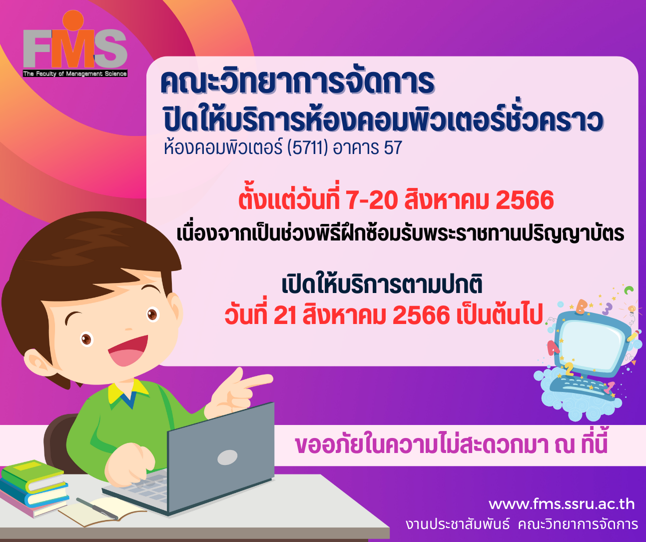 คณะวิทยาการจัดการ ปิดให้บริการห้องคอมพิวเตอร์ชั่วคราว