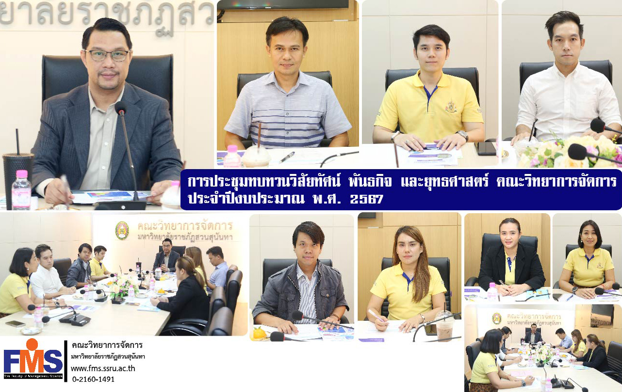 วันที่ 12 ตุลาคม 2565 เวลา 10.00 น. คณะวิทยาการจัดการ มหาวิทยาลัยราชภัฏสวนสุนันทา จัดประชุมทบทวนวิสัยทัศน์ พันธกิจ และยุทธศาสตร์ คณะวิทยาการจัดการ ประจำปีงบประมาณ พ.ศ. 2567 โดยมีผู้ช่วยศาสตราจารย์ ดร.สมศักดิ์ คล้ายสังข์ คณบดีคณะวิทยาการจัดการ เป็นประธานการประชุม เพื่อวางแผนการขับเคลื่อนคณะวิทยาการจัดการให้สอดคล้องกับวิสัยทัศน์ พันธกิจ ยุทธศาสตร์ใหม่ของมหาวิทยาลัย เพื่อให้การดำเนินงานเป็นไปอย่างมีประสิทธิภาพ มีรองคณบดีทุกฝ่าย หัวหน้าสำนักงานคณบดี หัวหน้าฝ่ายแผนงานและประกันคุณภาพ เข้าร่วมประชุม ณ ห้องประชุมรวมใจการจัดการ