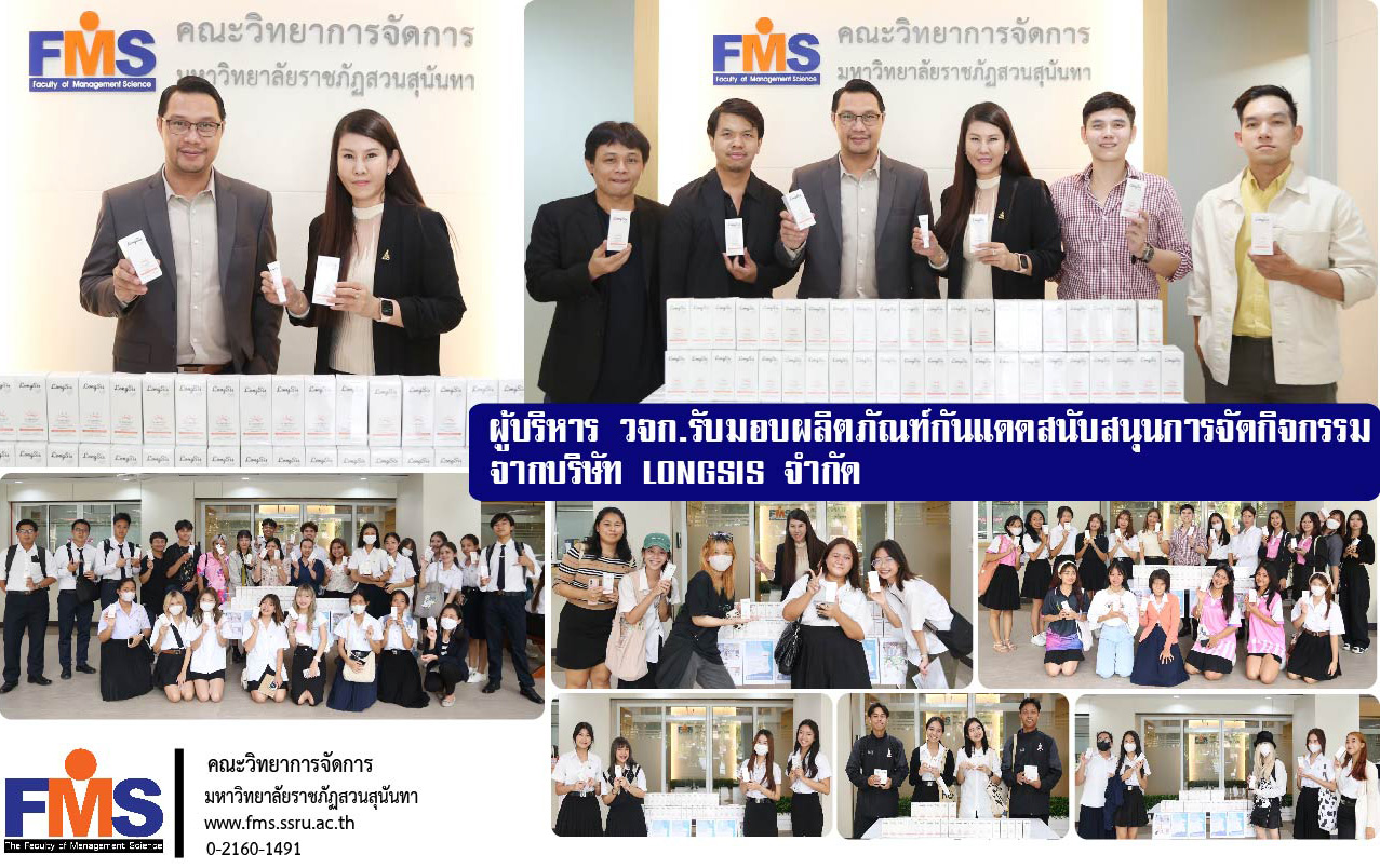 ในนามของผู้บริหาร คณาจารย์ บุคลากร และนักศึกษา คณะวิทยาการจัดการ มหาวิทยาลัยราชภัฏสวนสุนันทา ขอขอบคุณ บริษัท LONGSIS จำกัด ทั้งนี้ ผลิตภัณฑ์ดังกล่าว ทางคณะวิทยาการจัดการ จะมอบให้แก่นักศึกษาที่เข้าร่วมกิจกรรมกับทางคณะฯ ต่อไป