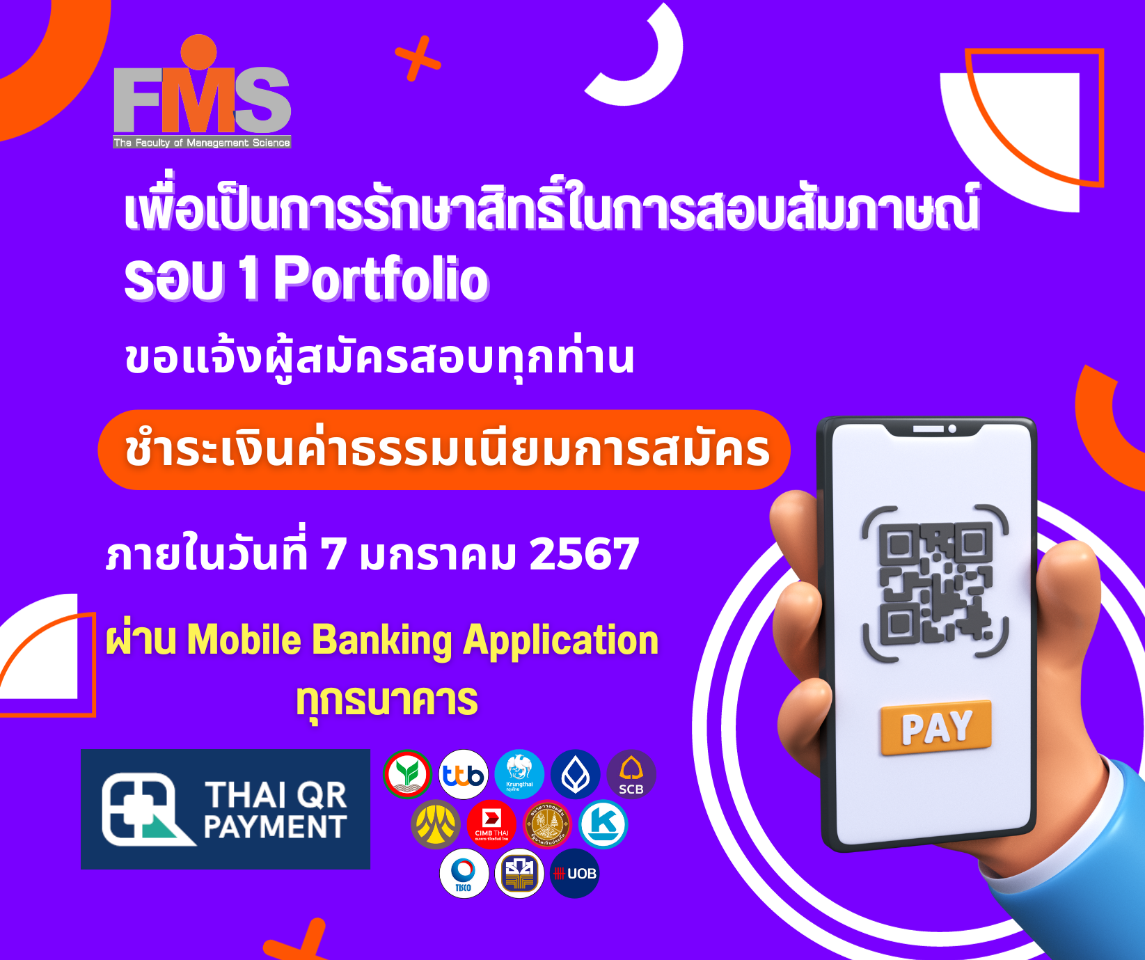 ขอแจ้งผู้สมัครสอบทุกท่าน ชำระเงินค่าธรรมเนียมการสมัคร
