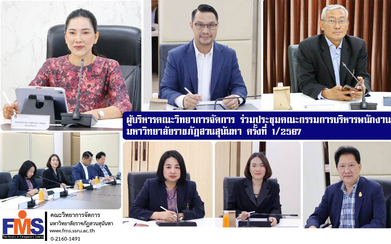 วันที่ 2 กุมภาพันธ์ 2567 เวลา 09.00 น. ผู้ช่วยศาสตราจารย์ ดร.สมศักดิ์ คล้ายสังข์ คณบดีคณะวิทยาการจัดการ เข้าร่วมประชุมคณะกรรมการบริหารพนักงาน มหาวิทยาลัยราชภัฏสวนสุนันทา ครั้งที่ 1/2567 โดยมีรองศาสตราจารย์ ดร. ชุติกาญจน์ ศรีวิบูลย์ อธิการบดีมหาวิทยาลัยราชภัฏสวนสุนันทา เป็นประธานการประชุม โดยมีวาระการประชุมที่สำคัญ คือ การพิจารณาเห็นชอบผลการประเมินเพื่อแต่งตั้งพนักงานมหาวิทยาลัย ให้ดำรงตำแหน่งสูงขึ้น ประเภทผู้บริหาร หัวหน้าสำนักงาน จำนวน 1 ราย และพิจารณาให้ความเห็นชอบเพื่อแต่งตั้งพนักงานมหาวิทยาลัยให้ดำรงตำแหน่งที่สูงขึ้น ระดับชำนาญการ จำนวน 9 ราย มีคณะกรรมการบริหารพนักงานฯ เข้าร่วมประชุม ณ สำนักงานอธิการบดี อาคาร 32 ชั้น 5
