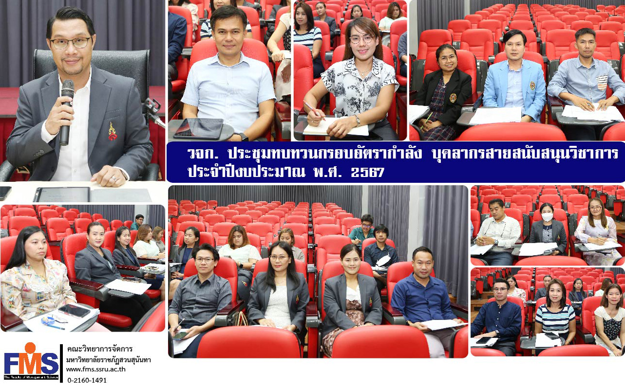 วันทึ่ 13 มีนาคม 2567 เวลา 10.00 น. คณะวิทยาการจัดการ จัดประชุมทบทวนกรอบอัตรากำลัง บุคลากรสายสนับสนุนวิชาการ ประจำปีงบประมาณ พ.ศ. 2567 โดยมีผู้ช่วยศาสตราจารย์ ดร.สมศักดิ์ คล้ายสังข์ คณบดีคณะวิทยาการจัดการ เป็นประธานการประชุม ร่วมด้วยอาจารย์ ดร.ปิติมนัส บรรลือ รองคณบดีฝ่ายบริหาร ซึ่งมีวาระที่สำคัญ คือ การทบทวน การวิเคราะห์อัตรากำลังบุคลากรสายสนับสนุนวิชาการ เพื่อทบทวนกรอบอัตรากำลังให้สอดคล้องกับภาระงานของงานที่ปฏิบัติ รวมทั้งการกำหนดแนวทางการปฏิบัติงานของบุคลากรสายสนับสนุนวิชาการ ซึ่งมีบทบาทหน้าที่ในการสนับสนุนพันธกิจหลักของคณะ รวมทั้งการปฏิบัติหน้าที่ในช่วงการเปิดและปิดภาคเรียน และวาระอื่นๆที่เกี่ยวข้อง มีหัวหน้าสำนักงานคณบดี หัวหน้าฝ่าย และบุคลากรสายสนับสนุนวิชาการประจำคณะเข้าร่วมประชุม ณ ห้องประชุมมินิเธียเตอร์ อาคาร 57 ชั้น 6 คณะวิทยาการจัดการ