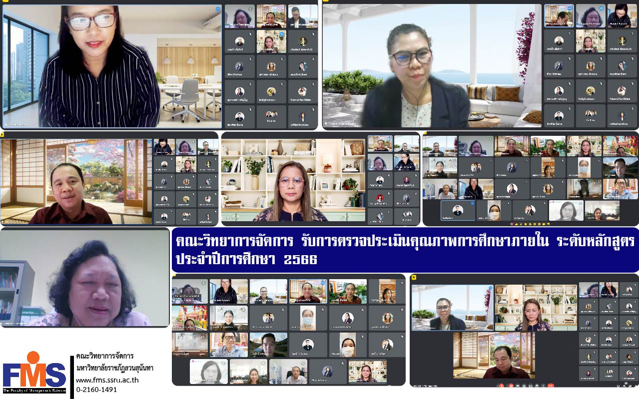 วันที่ 9 กรกฎาคม 2566 ฝ่ายแผนงานและประกันคุณภาพ คณะวิทยาการจัดการ จัด "โครงการตรวจประเมินคุณภาพการศึกษาภายใน ระดับหลักสูตร ประจำปีการศึกษา 2566" ในการตรวจประเมินครั้งนี้ ได้รับเกียรติจากคณะกรรมการผู้ทรงคุณวุฒิ ที่ผ่านการอบรมผู้ตรวจประเมินจากสำนักงานคณะกรรมการการอุดมศึกษา (สกอ.) และเป็นผู้ที่มีความรู้ความเชี่ยวชาญด้านเกณฑ์การประกันคุณภาพ ระดับหลักสูตรเป็นอย่างดี ได้แก่ รองศาสตราจารย์ ดร.วัลลี พุทโสม ประธานกรรมการ อาจารย์อุมาพร เภตราพรโชติ กรรมการ อาจารย์สายพิน เดชเรือง กรรมการ และนางสาวปาริฉัตร จันทร์นวล เลขานุการ โดยในวันนี้ดำเนินการตรวจประเมินหลักสูตรบริหารธุรกิจบัณฑิต ซึ่งมีอาจารย์ประจำหลักสูตร ได้แก่ แขนงวิชาการตลาด แขนงวิชาการเงินการธนาคาร แขนงวิชาการประกอบการธุรกิจ แขนงวิชาการจัดการธุรกิจบริการ และแขนงวิชาธุรกิจระหว่างประเทศ เข้ารับการสัมภาษณ์ ในรูปแบบการประชุมออนไลน์ด้วยโปรแกรม Google Meet