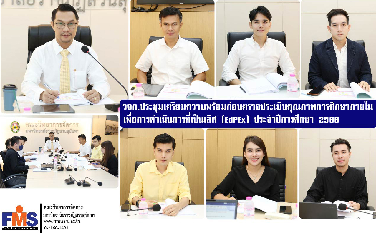 วันที่ 2 กันยายน 2567 ณ ห้องประชุมรวมใจการจัดการ คณะวิทยาการจัดการ คณะวิทยาการจัดการ มหาวิทยาลัยราชภัฏสวนสุนันทา จัดประชุมเตรียมความพร้อมก่อนตรวจประเมินคุณภาพการศึกษาภายใน เพื่อการดำเนินการที่เป็นเลิศ (EdPEx) ประจำปีการศึกษา 2566 โดยผู้ช่วยศาสตราจารย์ ดร.สมศักดิ์ คล้ายสังข์ คณบดีคณะวิทยาการจัดการ เป็นประธานการประชุม ร่วมด้วยรองคณบดีทุกฝ่าย หัวหน้าสำนักงานคณบดี และบุคลากรฝ่ายแผนงานและประกันคุณภาพ เข้าร่วมประชุม เพื่อหารือในการเตรียมความพร้อมเพื่อเข้ารับการตรวจประเมินฯกับมหาวิทยาลัยฯ ในช่วงบ่ายของวันเดียวกัน ณ ห้องประชุมสภามหาวิทยาลัยราชภัฏสวนสุนันทา อาคาร 31 ชั้น 5