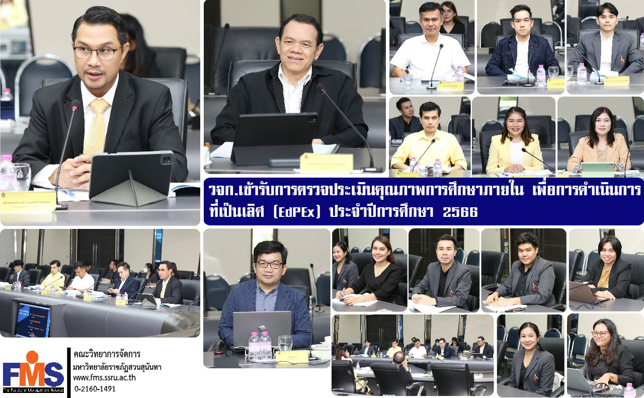 วันที่ 2 กันยายน 2567 คณะวิทยาการจัดการ มหาวิทยาลัยราชภัฏสวนสุนันทา เข้ารับการตรวจประเมินคุณภาพการศึกษาภายใน เพื่อการดำเนินการที่เป็นเลิศ (EdPEx) ประจำปีการศึกษา 2566 โดยผู้ช่วยศาสตราจารย์ ดร.สมศักดิ์ คล้ายสังข์ คณบดีคณะวิทยาการจัดการ พร้อมด้วยรองคณบดีทุกฝ่าย หัวหน้าสำนักงานคณบดี บุคลากรฝ่ายแผนงานและประกันคุณภาพ และบุคลากรที่เกี่ยวข้อง เข้าร่วมรับการตรวจประเมิน ซึ่งได้รับเกียรติจากรองศาสตราจารย์ ดร.อนันต์ มุ่งวัฒนา ประธานกรรมการตรวจประเมินฯ รองศาสตราจารย์ ดร.วิจิตรา ศรีสอน ผู้ช่วยศาสตราจารย์ ดร.สุดารัตน์ พิมลรัตนกานต์ กรรมการตรวจประเมินฯ และนายพิบูลย์ พูม่วง เลขานุการ ในการสัมภาษณ์และให้ข้อเสนอแนะเพื่อให้หน่วยงานนำแนวปฏิบัติไปพัฒนาส่วนงานให้มีการดำเนินการที่เป็นเลิศต่อไป ณ ห้องประชุมสภามหาวิทยาลัย อาคาร 31 ชั้น 5