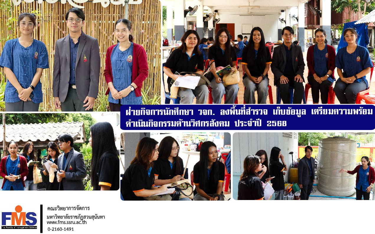 เมื่อวันที่ 19 มิถุนายน 2568 ผู้ช่วยศาสตราจารย์ ดร.พงศวีร์ สุภานนท์ รองคณบดีฝ่ายกิจการนักศึกษา คณะวิทยาการจัดการ มหาวิทยาลัยราชภัฏสวนสุนันทา พร้อมด้วยบุคลากรฝ่ายกิจการนักศึกษาและศิลปวัฒนธรรม และตัวแทนสโมสรนักศึกษาฯ ลงพื้นที่เก็บข้อมูล ตามกระบวนการวิศวกรสังคม โรงเรียนวัดไผ่จระเข้ อำเภอบางเลน จังหวัดนครปฐม เพื่อเตรียมความพร้อมดำเนินกิจกรรมด้านวิศกรสังคม ประจำปี 2568 โดยมีคณะครูโรงเรียนวัดไผ่จระเข้ ให้การต้อนรับ