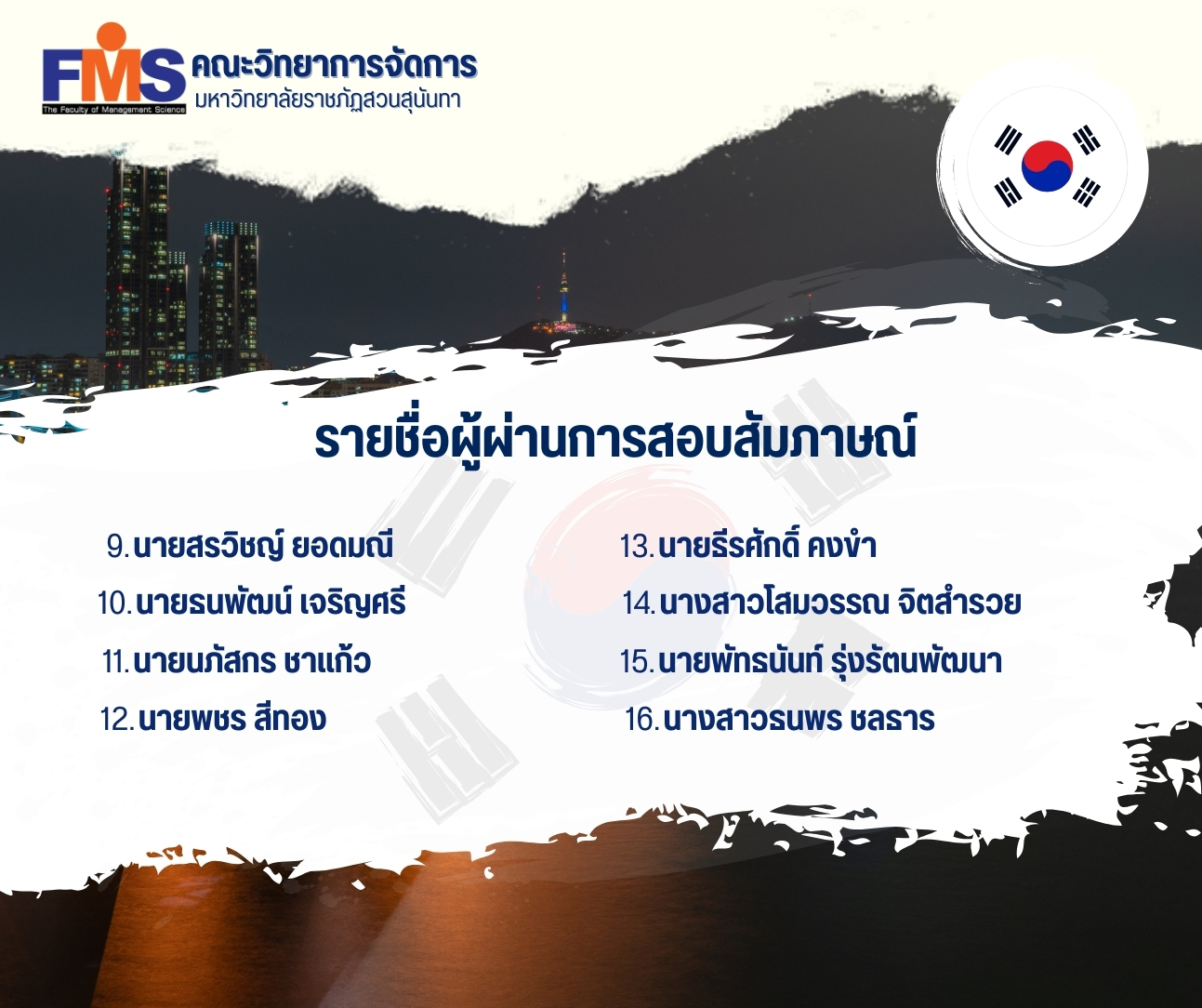 นักศึกษาที่ผ่านการสอบสัมภาษณ์จะต้องเข้าร่วมกิจกรรมตามที่คณะวิทยาการจัดการจัดขึ้นก่อนการเดินทางให้ครบถ้วน นักศึกษาต้องประพฤติดี มีพฤติกรรมที่เหมาะสม ทั้งในช่วงของก่อนการเดินทางและระหว่างที่ศึกษา ณ สาธารณรัฐเกาหลี หากนักศึกษาที่ได้ผ่านการสอบสัมภาษณ์มีพฤติกรรมไม่เหมาะสม และไม่เข้าร่วมกิจกรรมที่ทางคณะฯ จัดขึ้น คณะกรรมการสามารถพิจารณาผู้ที่มีความเหมาะสมและนำเสนอรายชื่อเพื่อจัดทำเป็นประกาศคณะวิทยาการจัดการ เรื่อง รายชื่อผู้เข้าร่วมโครงการฯ เพิ่มเติมได้ทันที