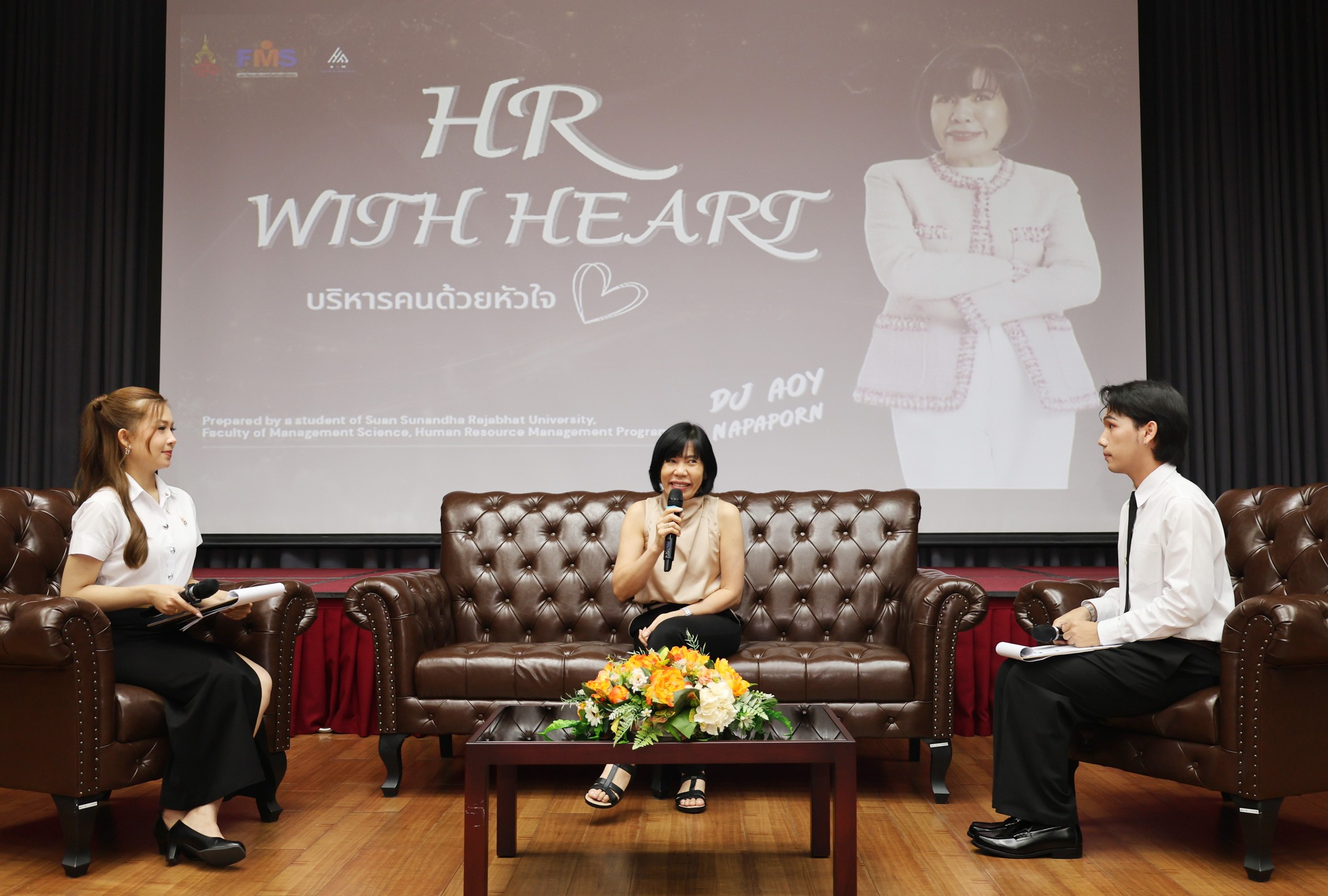 นักศึกษาชั้นปีที่ 3 แขนงวิชาบริหารทรัพยากรมนุษย์ คณะวิทยาการจัดการ แห่ง มหาวิทยาลัยราชภัฏสวนสุนันทา จัดโครงการสัมมนาในหัวข้อ “HR WITH HEART บริหารคนด้วยหัวใจ” เพื่อส่งเสริมองค์ความรู้ด้านการบริหารทรัพยากรมนุษย์และการพัฒนาศักยภาพนักศึกษาให้พร้อมสู่โลกการทำงานในอนาคต โดยได้รับเกียรติจาก ผู้ช่วยศาสตราจารย์ ดร.ชุติมา คล้ายสังข์ คณบดีคณะวิทยาการจัดการ เป็นประธานกล่าวเปิดโครงการ พร้อมด้วย อาจารย์ ดร.จีรพรรณ์ จันทร์วิเชียร รองคณบดีฝ่ายพัฒนาธุรกิจและจัดหารายได้ และ อาจารย์เปรมใจ เอื้อจิตร์ หัวหน้าแขนงวิชาการบริหารทรัพยากรมนุษย์ รวมถึงคณาจารย์ประจำแขนงวิชา ได้แก่ ผู้ช่วยศาสตราจารย์ ดร. อรรณพ ปานพวง อาจารย์ที่ปรึกษาโครงการ ผู้ช่วยศาสตราจารย์ ดร. สิริอร จำปาทอง และ อาจารย์ขจีรัตน์ พุ่มพฤกษ์ เข้าร่วมกิจกรรม ณ ห้อง Mini Theater อาคาร 57 ชั้น 6 คณะวิทยาการจัดการ