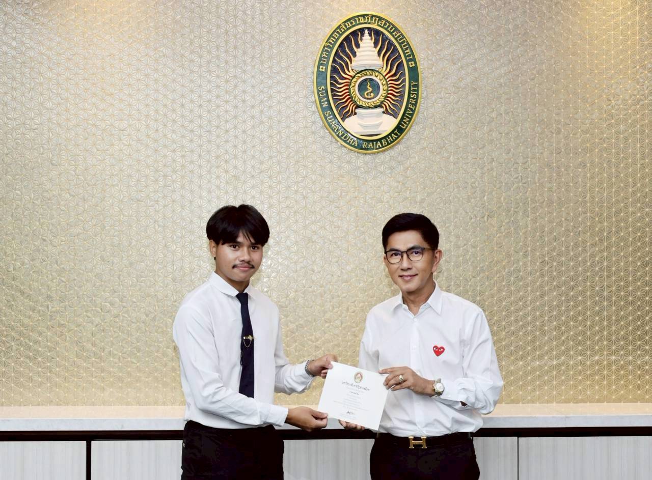 ในการนี้ นายฟาเดลล์ ดีแม นักศึกษาแขนงวิชาธุรกิจระหว่างประเทศ และนายธีรภัทร ร่มจำปา นักศึกษาแขนงวิชาการตลาด เป็นตัวแทนเข้ารับเกียรติบัตรจาก รองศาสตราจารย์ ดร.ฤๅเดช เกิดวิชัย นายกสภามหาวิทยาลัยราชภัฏสวนสุนันทา เพื่อยกย่องความมุ่งมั่น ความสามารถ และความสามัคคีของทีมที่นำไปสู่ชัยชนะอันทรงเกียรติ